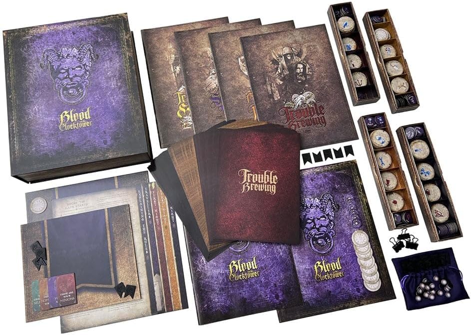 In the quiet village of Ravenswood Bluff, a demon walks amongst you. During a hellish thunderstorm, on the stroke of midnight, there echoes a bone-chilling scream. The townsfolk rush to investigate and find the town storyteller murdered, their body impaled on the hands of the clocktower, blood dripping onto the cobblestones below. A Demon is on the loose, murdering by night and disguised in human form by day. Some have scraps of information. Others have abilities that fight the evil or protect the innocent. But the Demon and its evil minions are spreading lies to confuse and breed suspicion. Will the good townsfolk put the puzzle together in time to execute the true demon and save themselves? Or will evil overrun this once peaceful village?