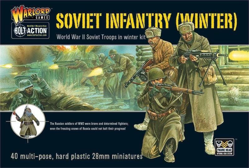 Enough plastic components to make 40 Soviet Union infantry miniatures, equipped to fight in the harsh winter of the Eastern Front. Includes a host of options to allow for different weapons and command models.