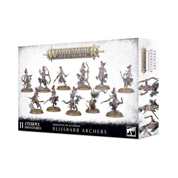 The Blissbarb Archers dance around the battlefield, loosing volleys of deadly arrows. One model may be assembled as a High Tempter while the kit also includes a Blissbrew Homonculus, who can add even more potent toxins to your ranged attacks.