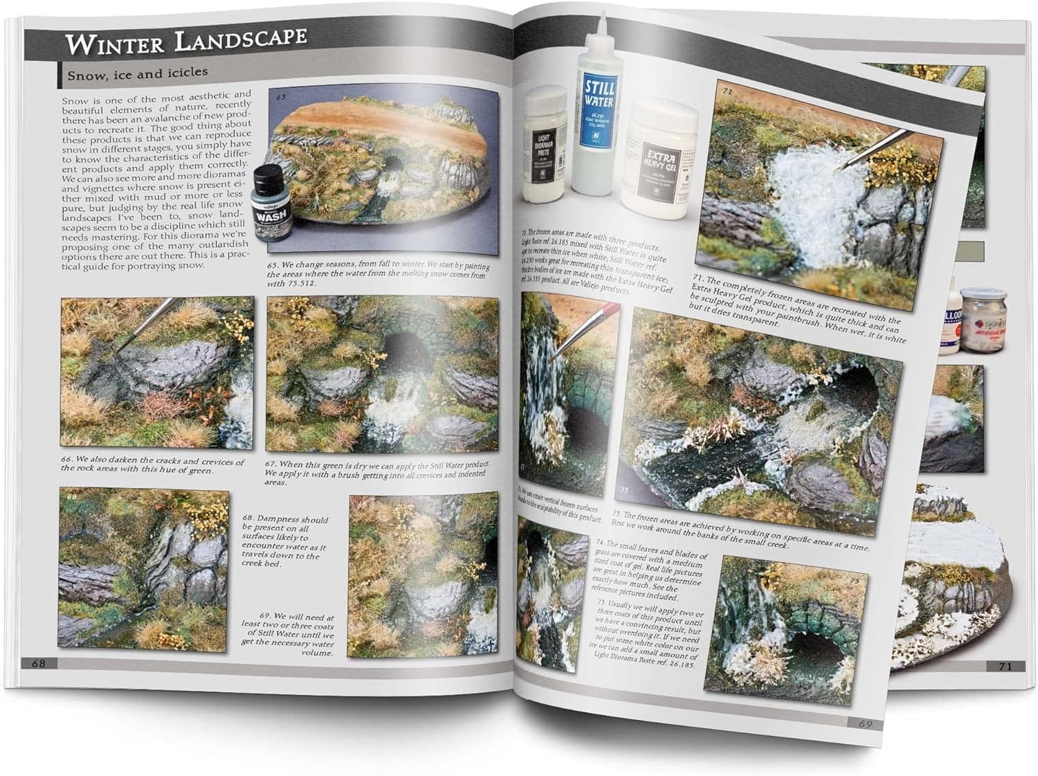 The first volume in the Landscapes of War series contains many examples, both in terms of modeling and painting, allowing the reader to create a variety of different environments and natural elements, including paths, beaches, rocks, trees, snow and water.