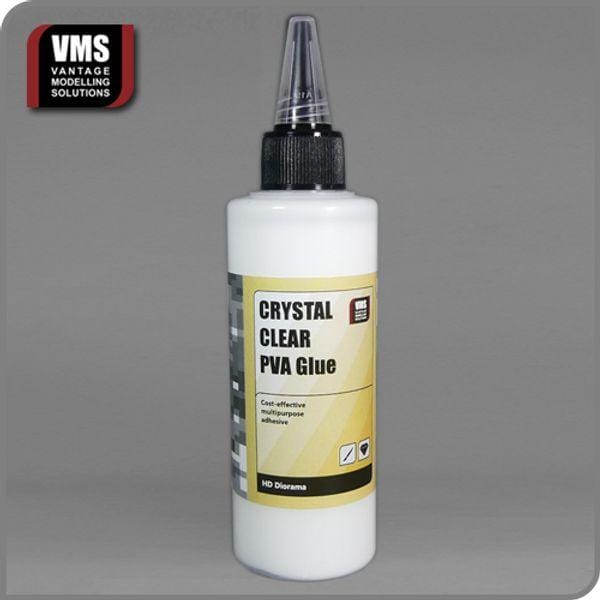 PVA is a classic way of gluing all kinds of materials on a diorama base. PVA is good when you need to affix and position a lot of objects and using a CA glue would be wasteful. PVA dries slowly allowing for a lot of manipulation so that you can plan the layout of your base on the fly. Appropriate for materials such as wood, paper, cardboard, minerals. VMS PVA has improved formula and dries two times faster than old school PVA you might have used and what’s more important the joint is much less milky! IMPORTANT: The product is susceptible to low temperatures and mustn’t be frozen! Store and handle in room temperature.
