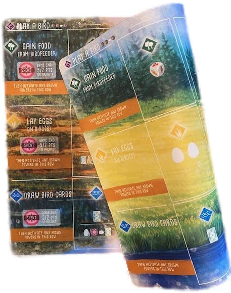 This new version of the Wingspan natural rubber playmat is double-sided (original and Oceania). The original mats are important because most Wingspan expansions are designed with them as the foundation; the Oceania mat is typically used when you’re playing with nectar.